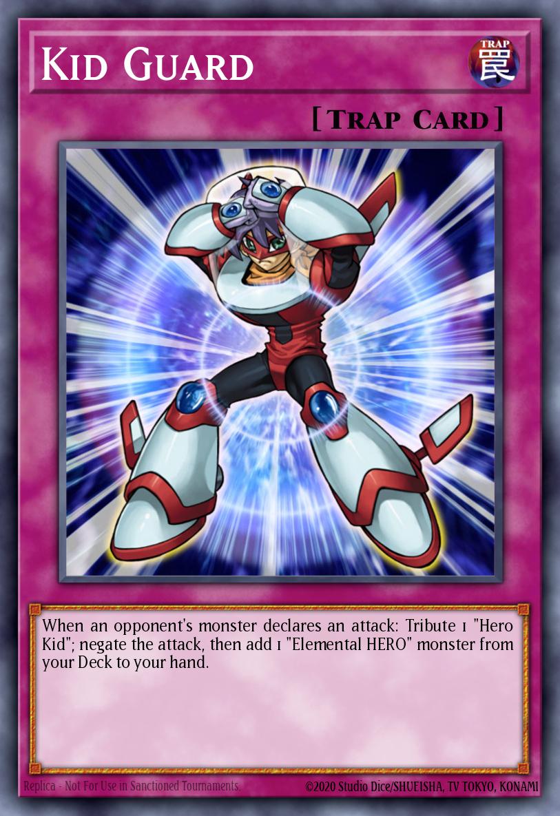 When an opponent's monster declares an attack: Tribute 1 "Hero Kid"; negate the attack, then add 1 "Elemental HERO" monster from your Deck to your hand.