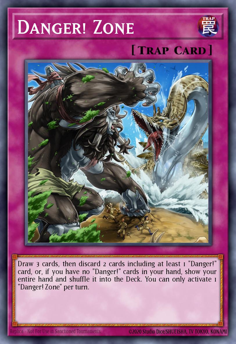 Draw 3 cards, then discard 2 cards including at least 1 "Danger!" card, or, if you have no "Danger!" cards in your hand, show your entire hand and shuffle it into the Deck. You can only activate 1 "Danger! Zone" per turn.