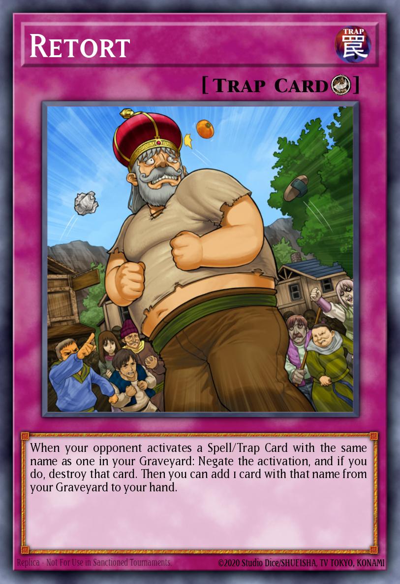 When your opponent activates a Spell/Trap Card with the same name as one in your Graveyard: Negate the activation, and if you do, destroy that card. Then you can add 1 card with that name from your Graveyard to your hand.