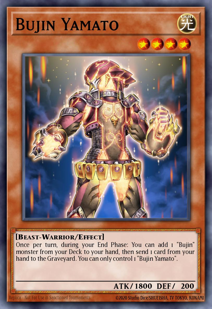 Once per turn, during your End Phase: You can add 1 "Bujin" monster from your Deck to your hand, then send 1 card from your hand to the Graveyard. You can only control 1 "Bujin Yamato".