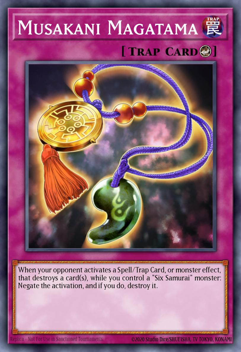 When your opponent activates a Spell/Trap Card, or monster effect, that destroys a card(s), while you control a "Six Samurai" monster: Negate the activation, and if you do, destroy it.