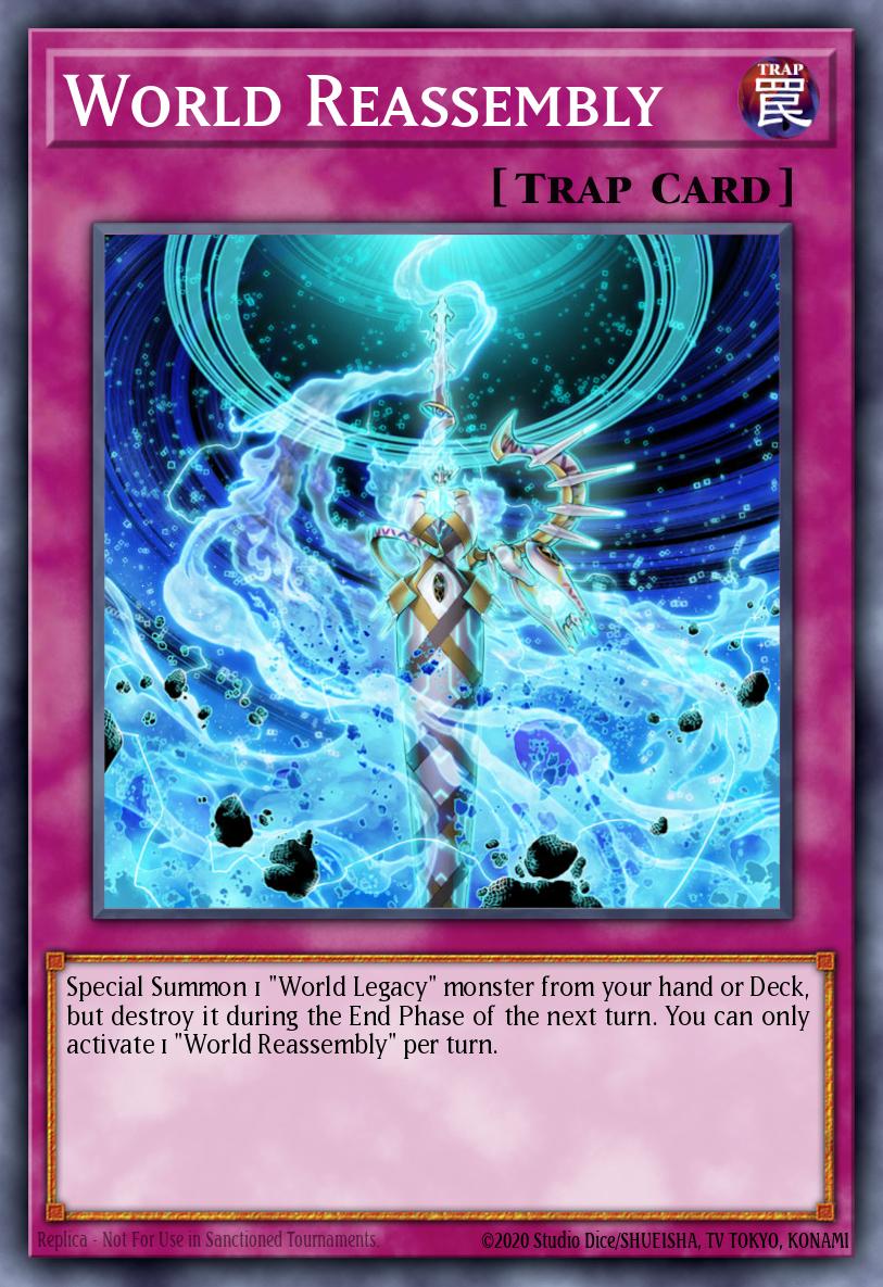 Special Summon 1 "World Legacy" monster from your hand or Deck, but destroy it during the End Phase of the next turn. You can only activate 1 "World Reassembly" per turn.