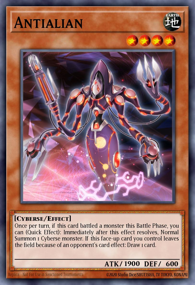 Once per turn, if this card battled a monster this Battle Phase, you can (Quick Effect): Immediately after this effect resolves, Normal Summon 1 Cyberse monster. If this face-up card you control leaves the field because of an opponent's card effect: Draw 1 card.