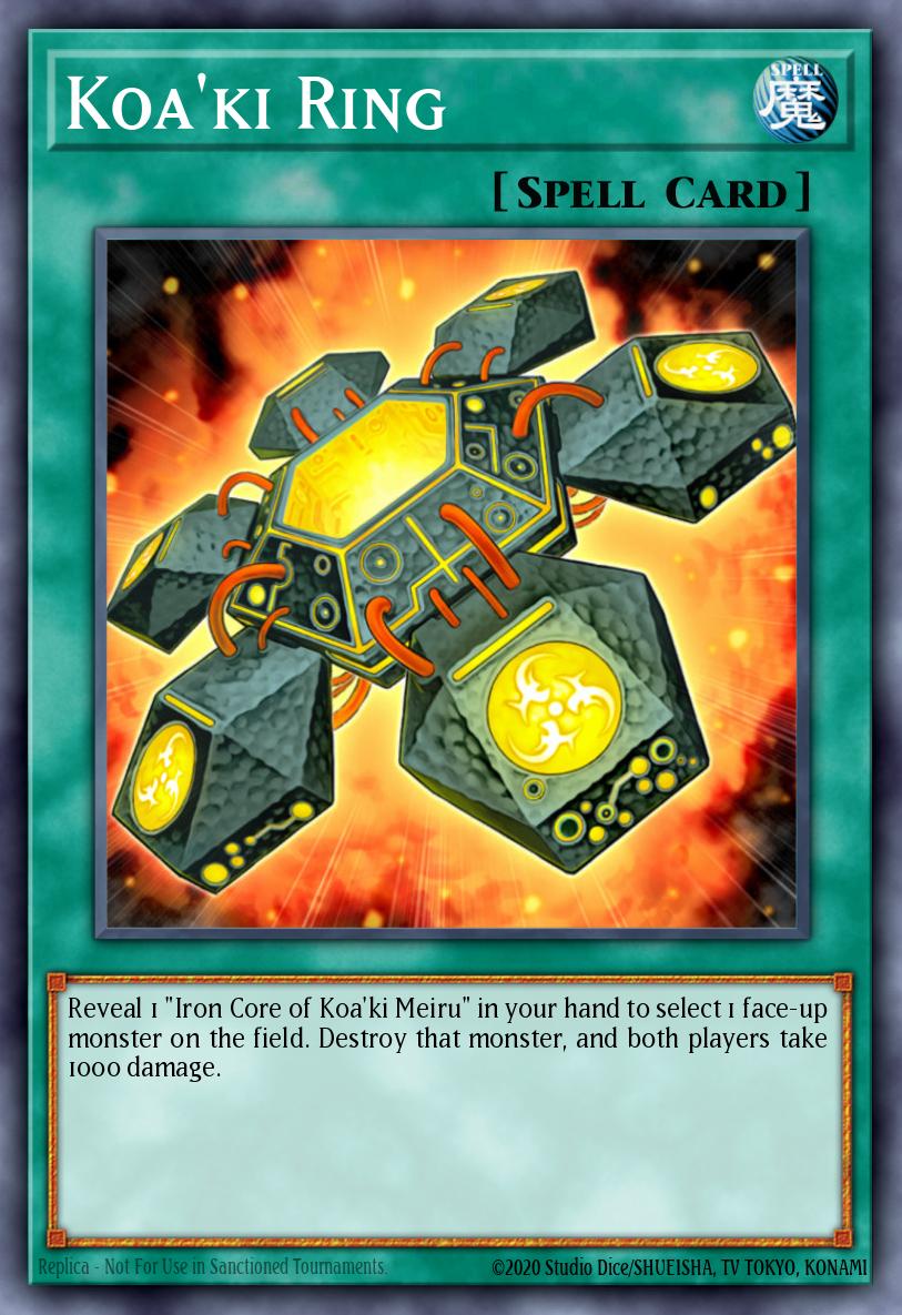Reveal 1 "Iron Core of Koa'ki Meiru" in your hand to select 1 face-up monster on the field. Destroy that monster, and both players take 1000 damage.