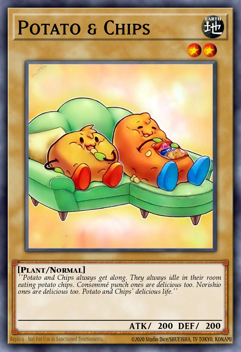 ''Potato and Chips always get along. They always idle in their room eating potato chips. Consommé punch ones are delicious too. Norishio ones are delicious too. Potato and Chips' delicious life.''