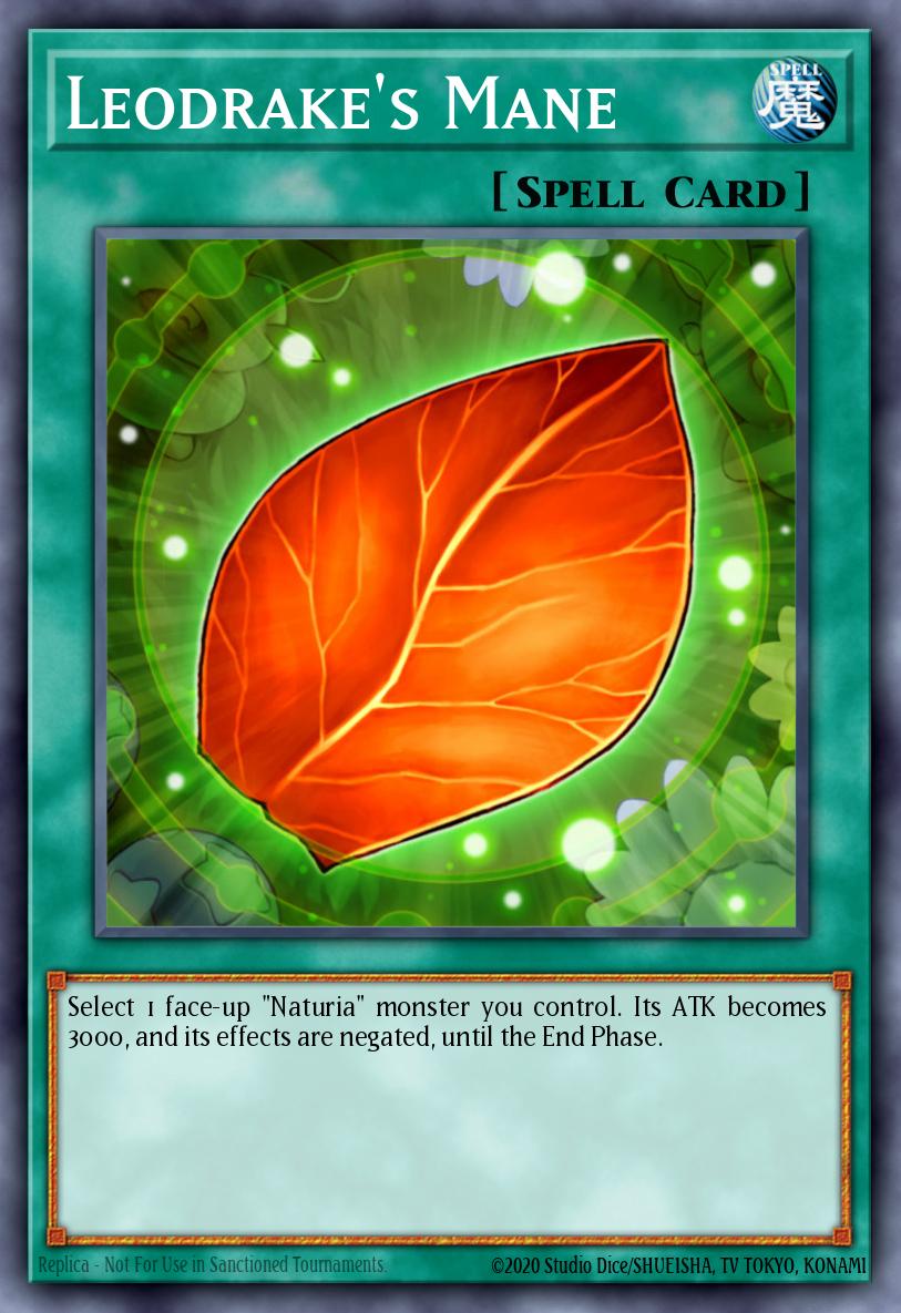 Select 1 face-up "Naturia" monster you control. Its ATK becomes 3000, and its effects are negated, until the End Phase.