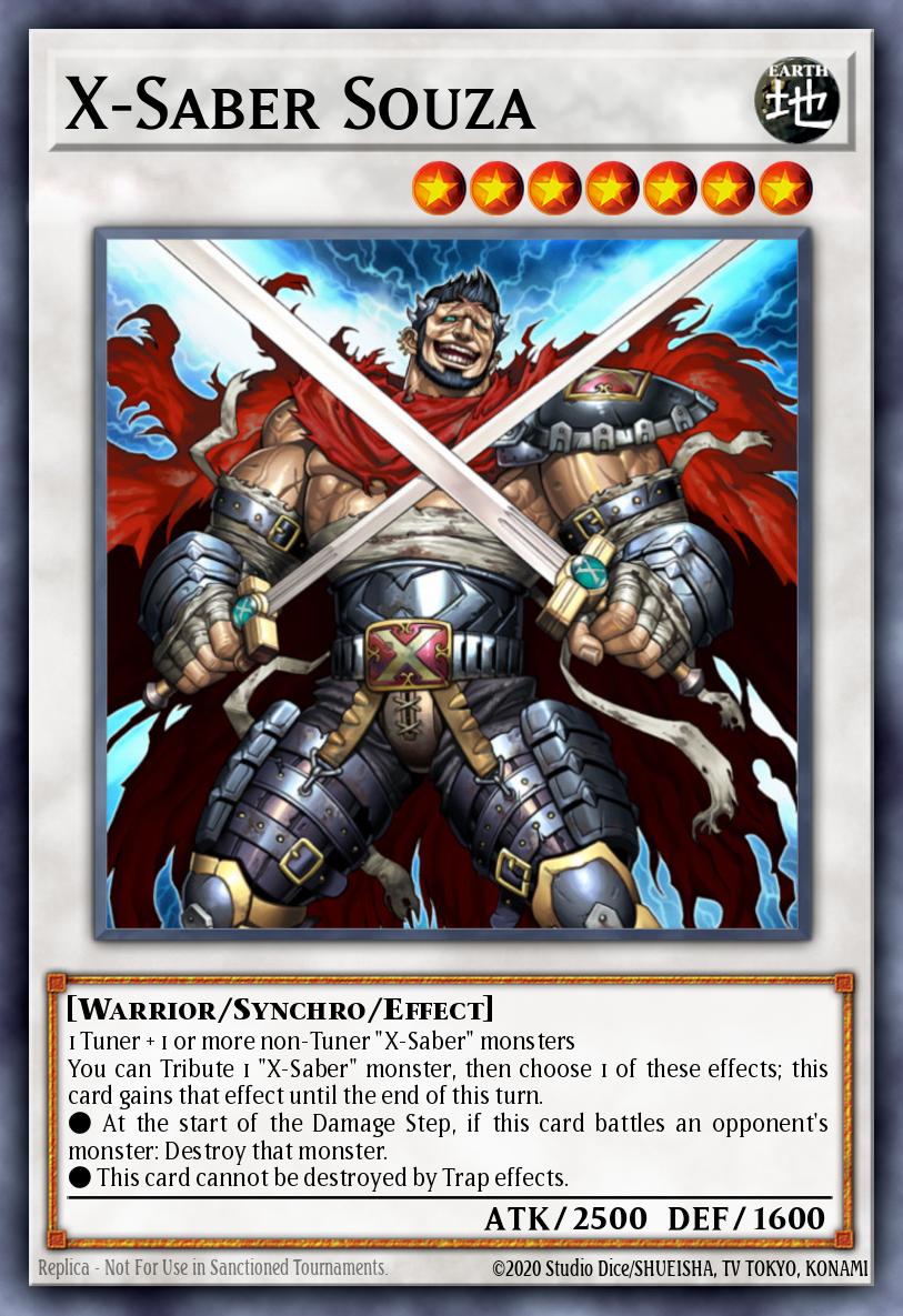 1 Tuner + 1 or more non-Tuner "X-Saber" monsters You can Tribute 1 "X-Saber" monster, then choose 1 of these effects; this card gains that effect until the end of this turn. ● At the start of the Damage Step, if this card battles an opponent's monster: Destroy that monster. ● This card cannot be destroyed by Trap effects.