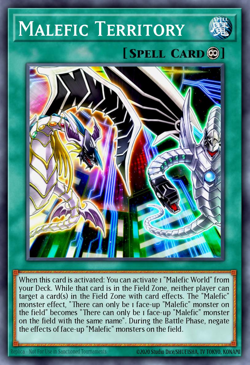 When this card is activated: You can activate 1 "Malefic World" from your Deck. While that card is in the Field Zone, neither player can target a card(s) in the Field Zone with card effects. The "Malefic" monster effect, "There can only be 1 face-up "Malefic" monster on the field" becomes "There can only be 1 face-up "Malefic" monster on the field with the same name". During the Battle Phase, negate the effects of face-up "Malefic" monsters on the field.