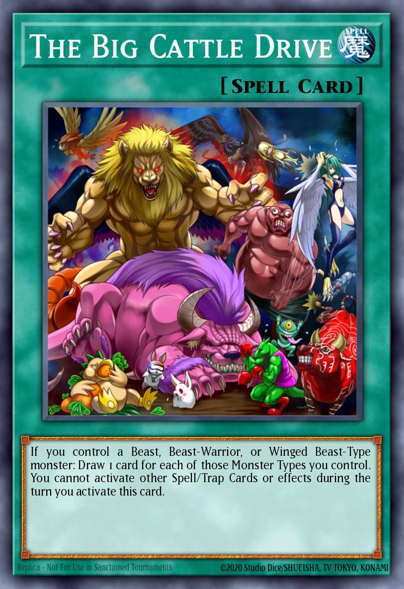 If you control a Beast, Beast-Warrior, or Winged Beast-Type monster: Draw 1 card for each of those Monster Types you control. You cannot activate other Spell/Trap Cards or effects during the turn you activate this card.