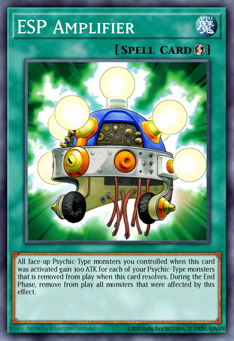 All face-up Psychic-Type monsters you controlled when this card was activated gain 300 ATK for each of your Psychic-Type monsters that is removed from play when this card resolves. During the End Phase, remove from play all monsters that were affected by this effect.