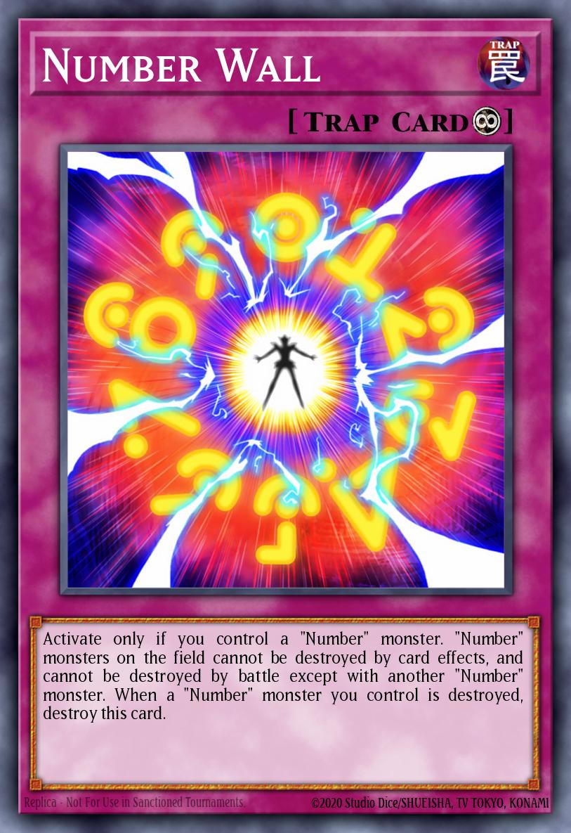 Activate only if you control a "Number" monster. "Number" monsters on the field cannot be destroyed by card effects, and cannot be destroyed by battle except with another "Number" monster. When a "Number" monster you control is destroyed, destroy this card.