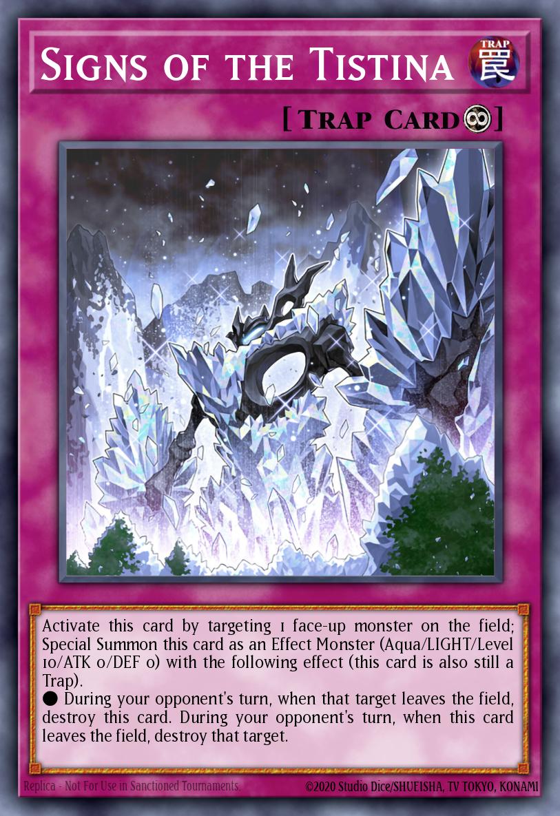 Activate this card by targeting 1 face-up monster on the field; Special Summon this card as an Effect Monster (Aqua/LIGHT/Level 10/ATK 0/DEF 0) with the following effect (this card is also still a Trap). ● During your opponent's turn, when that target leaves the field, destroy this card. During your opponent's turn, when this card leaves the field, destroy that target.