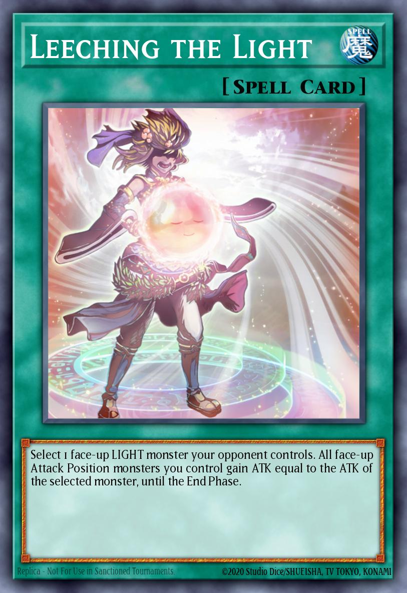 Select 1 face-up LIGHT monster your opponent controls. All face-up Attack Position monsters you control gain ATK equal to the ATK of the selected monster, until the End Phase.