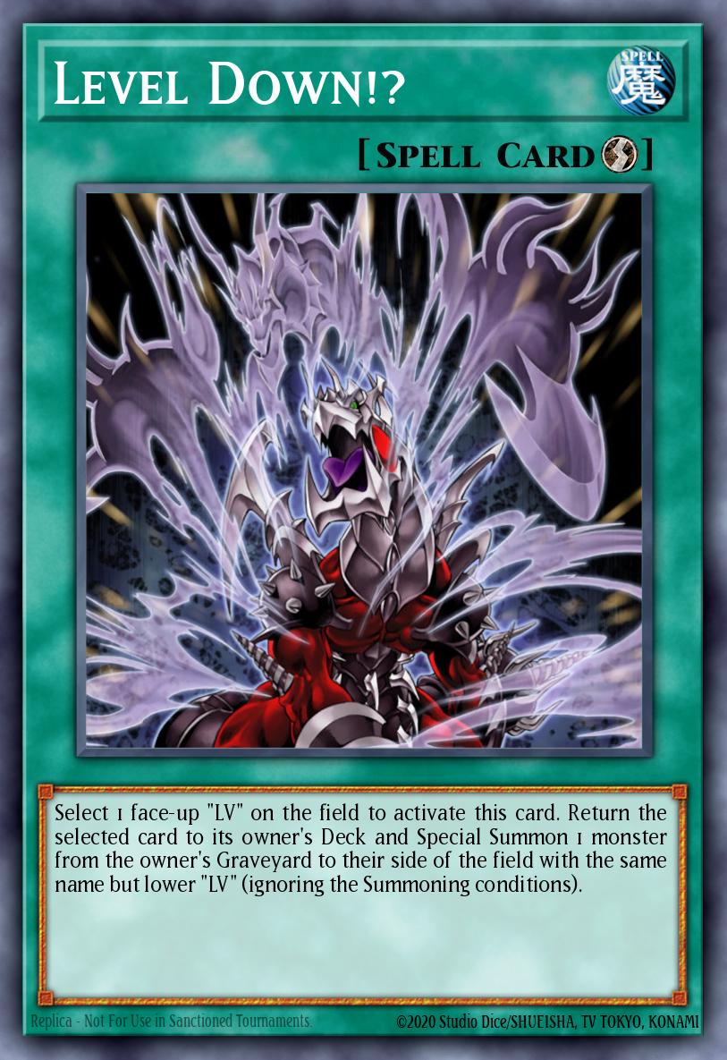 Select 1 face-up "LV" on the field to activate this card. Return the selected card to its owner's Deck and Special Summon 1 monster from the owner's Graveyard to their side of the field with the same name but lower "LV" (ignoring the Summoning conditions).