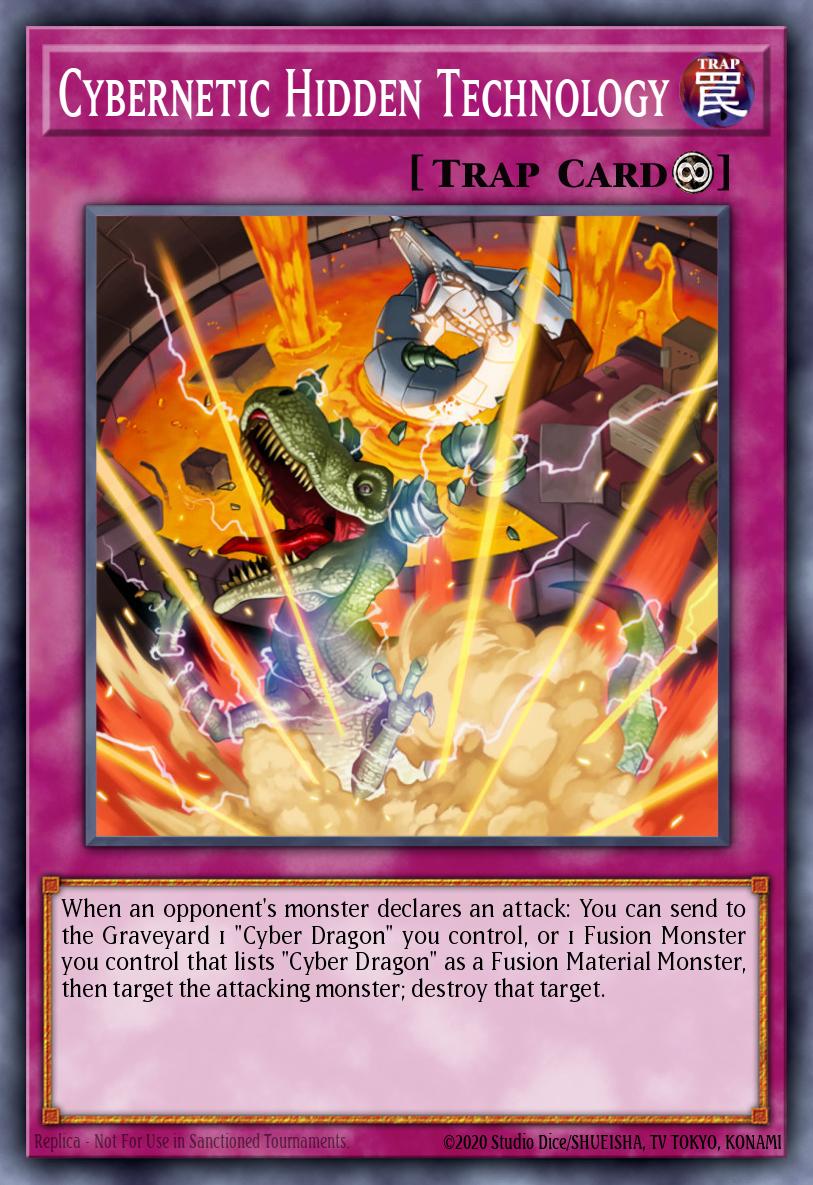When an opponent's monster declares an attack: You can send to the Graveyard 1 "Cyber Dragon" you control, or 1 Fusion Monster you control that lists "Cyber Dragon" as a Fusion Material Monster, then target the attacking monster; destroy that target.