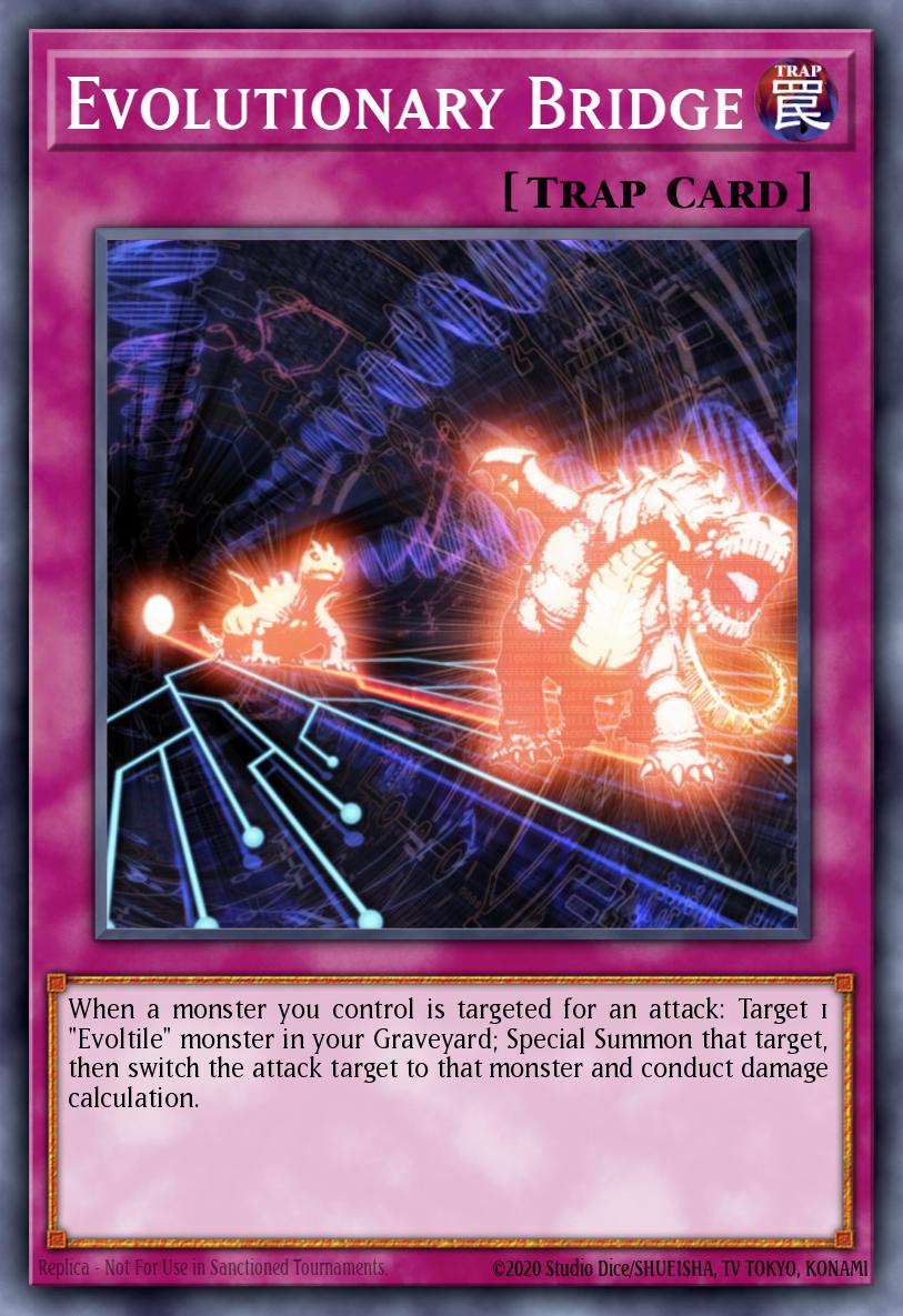 When a monster you control is targeted for an attack: Target 1 "Evoltile" monster in your Graveyard; Special Summon that target, then switch the attack target to that monster and conduct damage calculation.