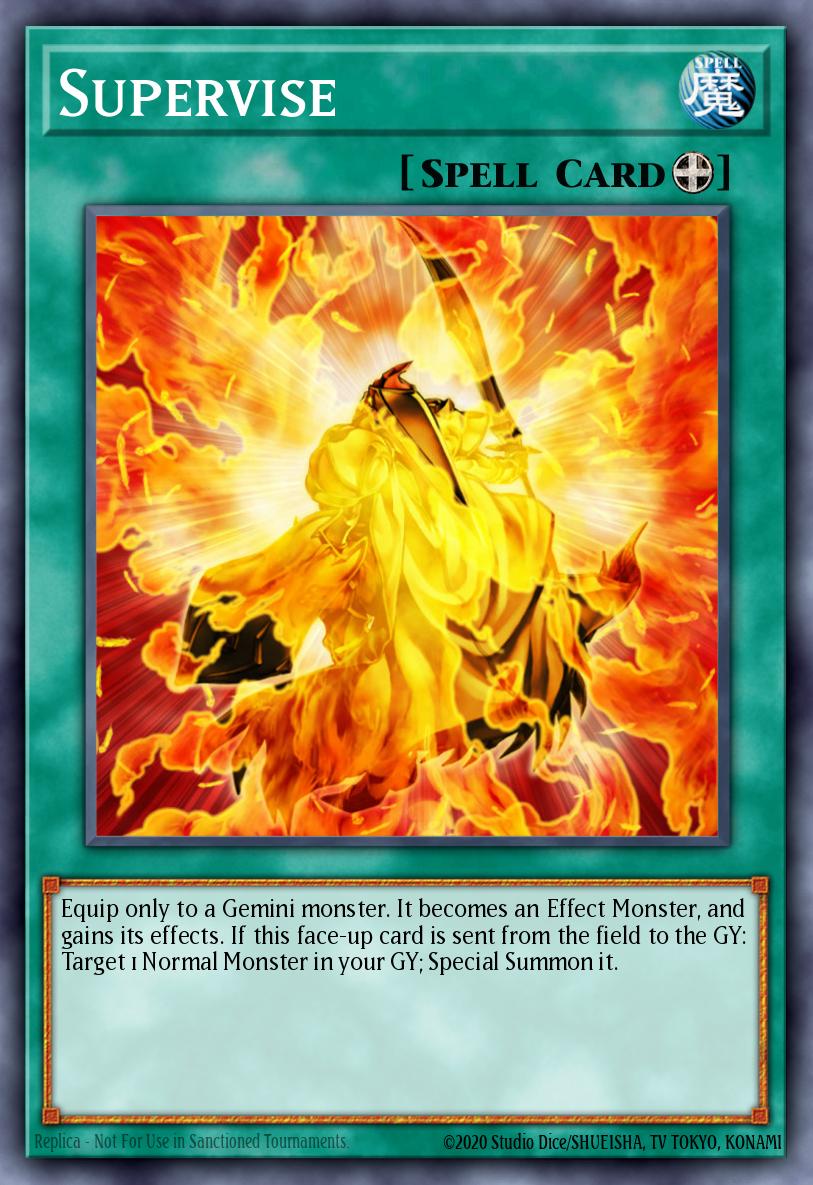Equip only to a Gemini monster. It becomes an Effect Monster, and gains its effects. If this face-up card is sent from the field to the GY: Target 1 Normal Monster in your GY; Special Summon it.